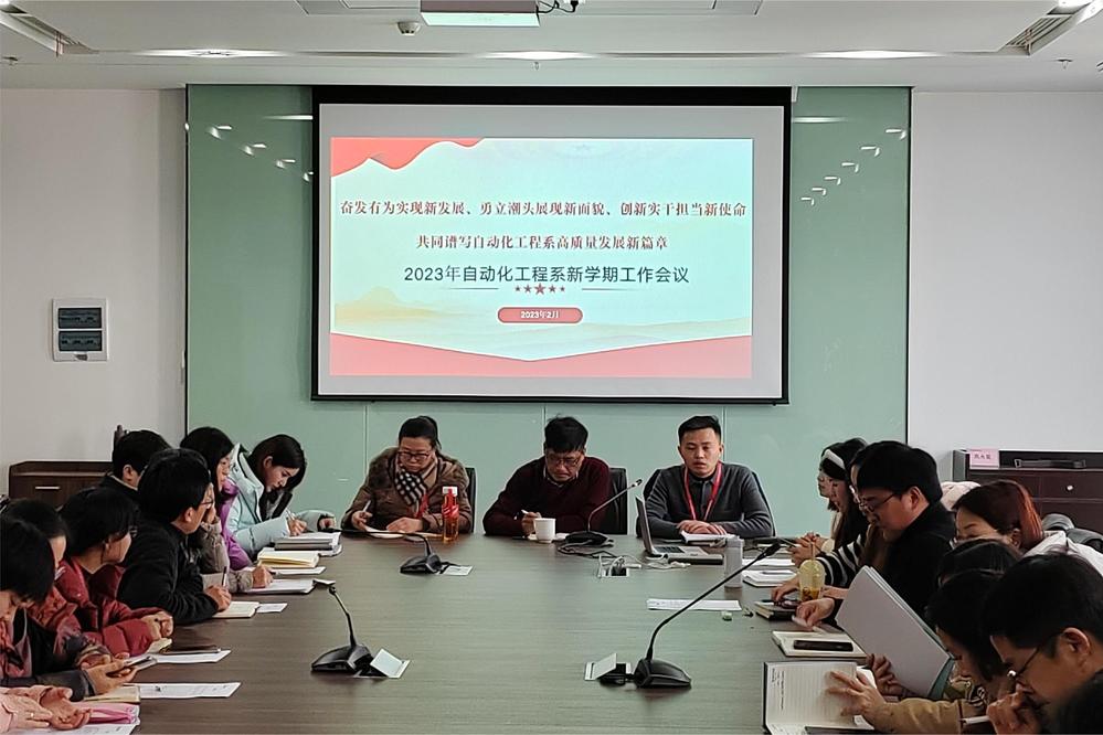 东风送暖梅花香,阳光普照春意浓。2月19日下午,自动化工程系在育德楼303会议室召开新学期第一次工作会议,自动化工程系全体教职工参加了本次会议,会议由党支部副书记高水冕主持。