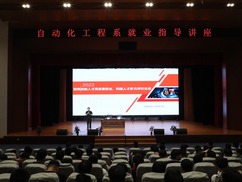 为进一步做好学院毕业生就创业工作,推动毕业生高质量就业,5月8日下午,自动化工程系特邀江苏省人才交流中心唐睿(苏州富纳艾尔科技有限公司经理),为同学们带来了“聚焦技能人才高质量就业,构建人才多元评价生态”为主题的讲座,系部书记高水冕主持,学工干事于靖欢,辅导员代表和全体在校生参加了本次讲座。
