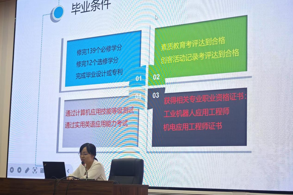 为了更好地引导2023级新生顺利完成角色转换,更快地适应学校环境,了解专业发展,规划好未来三年的学习,9月14日上午在乐学楼102报告厅,机电一体化技术专业负责人叶泉老师给新生做专业介绍,机电一体化技术专业2023级全体新生参与此次活动。