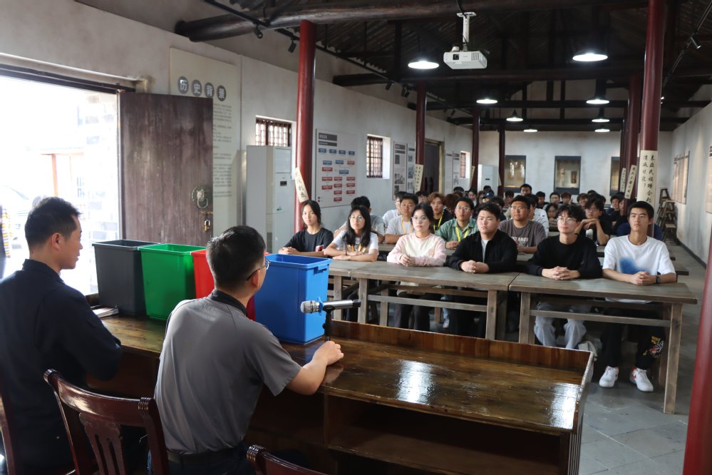 第二站同学们到达西舍红色教育基地展开活动,首先桠溪街道团工委书记胡俊为同学们带来了一堂生动的“青春思政课”,引导同学们争做有理想、敢担当、能吃苦、肯奋斗的新时代好青年。随后桠溪街道招商办工作人员向同学们宣讲了高淳区人才政策,引导大家积极参与各类团属活动。