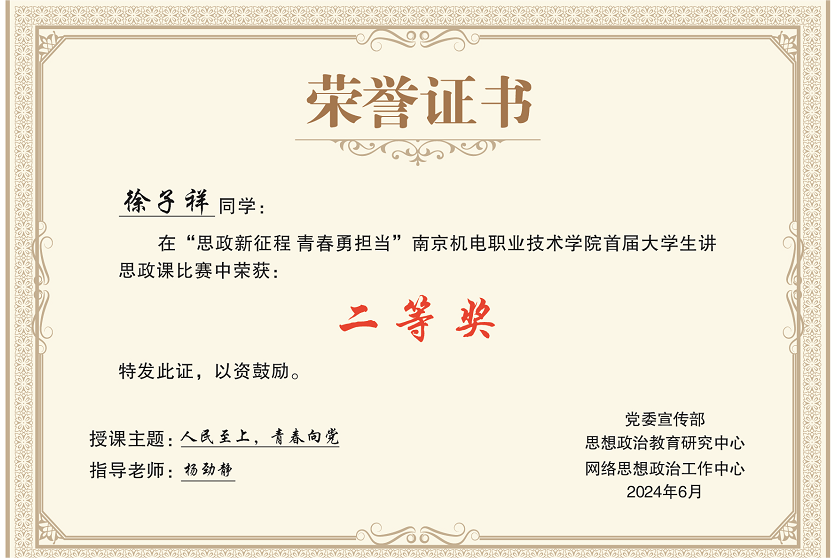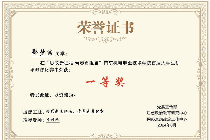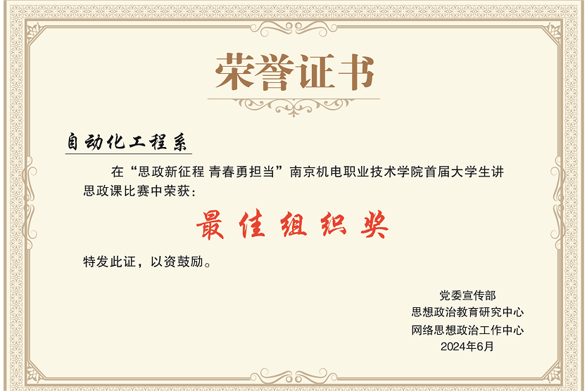 2024年6月18日,球友会在线首届大学生讲思政课比赛圆满落下帷幕,自动化工程系荣获最佳组织奖,郑梦洁(指导教师:于靖欢)荣获一等奖,徐子祥(指导教师:杨劲静)荣获二等奖。