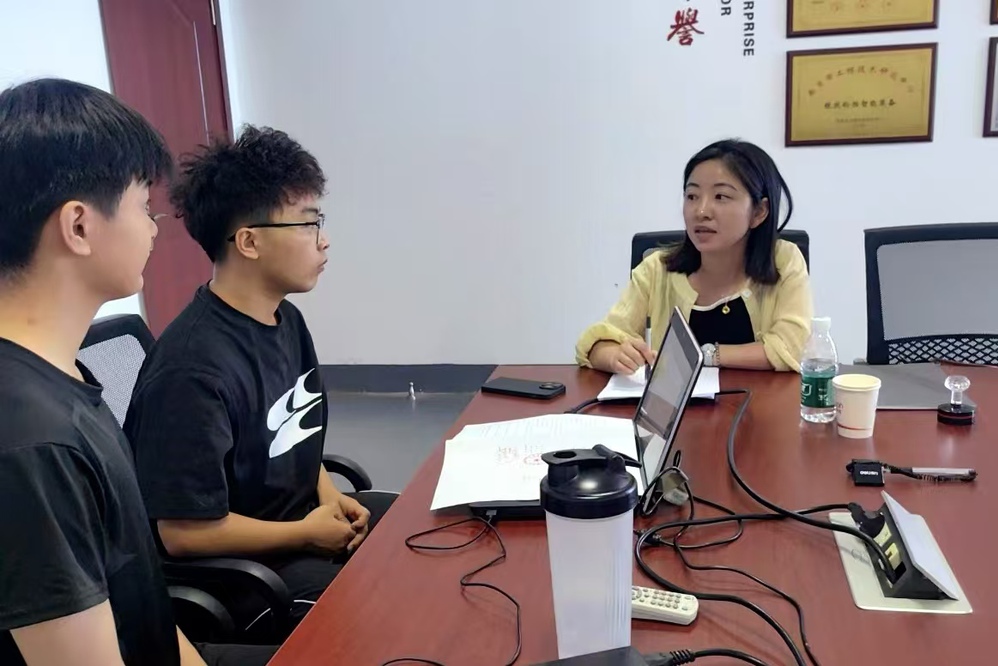 在江苏龙贞智能技术有限公司,朱红娟一行走访调研并看望实习学生。企业主管介绍了“人工智能、机器人、数字制造”相结合的服务型制造业所面临的机遇和挑战,他认为以制造运行管理(MOM)、制造执行系统(MES)解决方案为主体,以智能制造整体解决方案为应用,为制造业客户提供智能物流、机器人解决方案及专用系统、软件和服务。交流结束,与在企实习学生进行交流,了解学生入企以来的生活、工作与学习提升的情况。