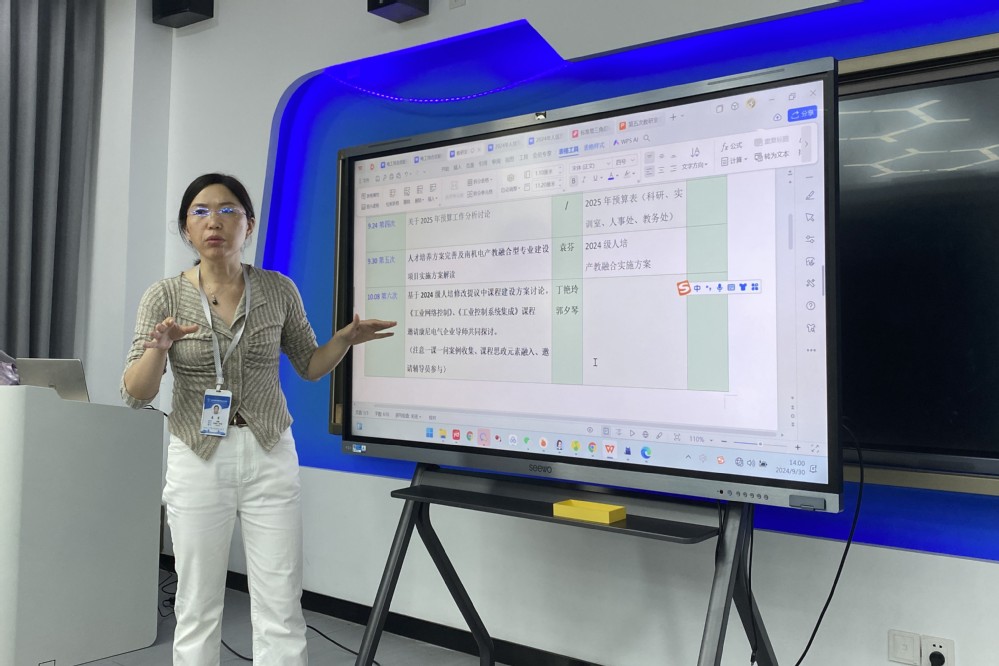 9月30日,电气教研室在知行楼204开展了关于2024级人才培养方案修订和产教融合型专业建设研讨会,本次会议由袁芬主持,全体教师参与讨论。
