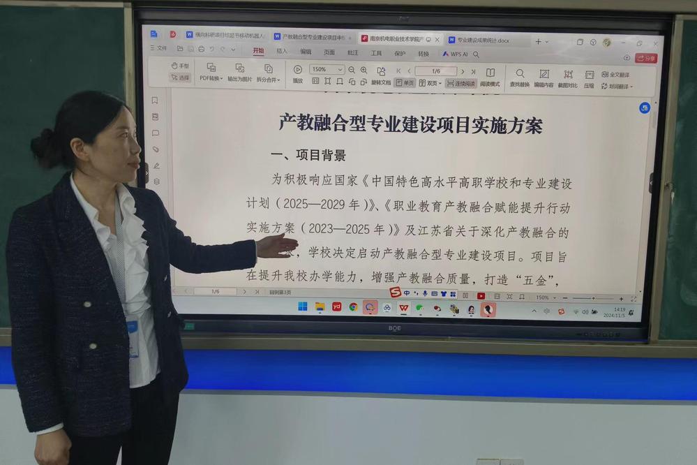会议伊始,教研室主任袁芬详细介绍了项目背景,依托国家《中国特色高水平高职学校和专业建设计划(2025-2029年)》以及江苏省深化产教融合相关要求,为此次项目建设指明了方向。