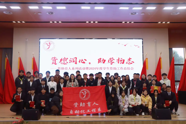 为深入学习贯彻党的二十届三中全会精神,深化关工委关爱助学工作,切实加强系部资助宣传大使团队建设,持续助力学生健康成长,教育引导青年学子立报国强国大志向、做挺膺担当奋斗者,12月24日,自动化工程系在乐学楼报告厅成功开展资助育人系列活动暨2024年度学生资助工作总结会。自动化工程系学工团队全体成员、学生干部代表和全体受助学生参与活动,活动由2024年国家励志奖学金获得者学生代表张建蓉主持。