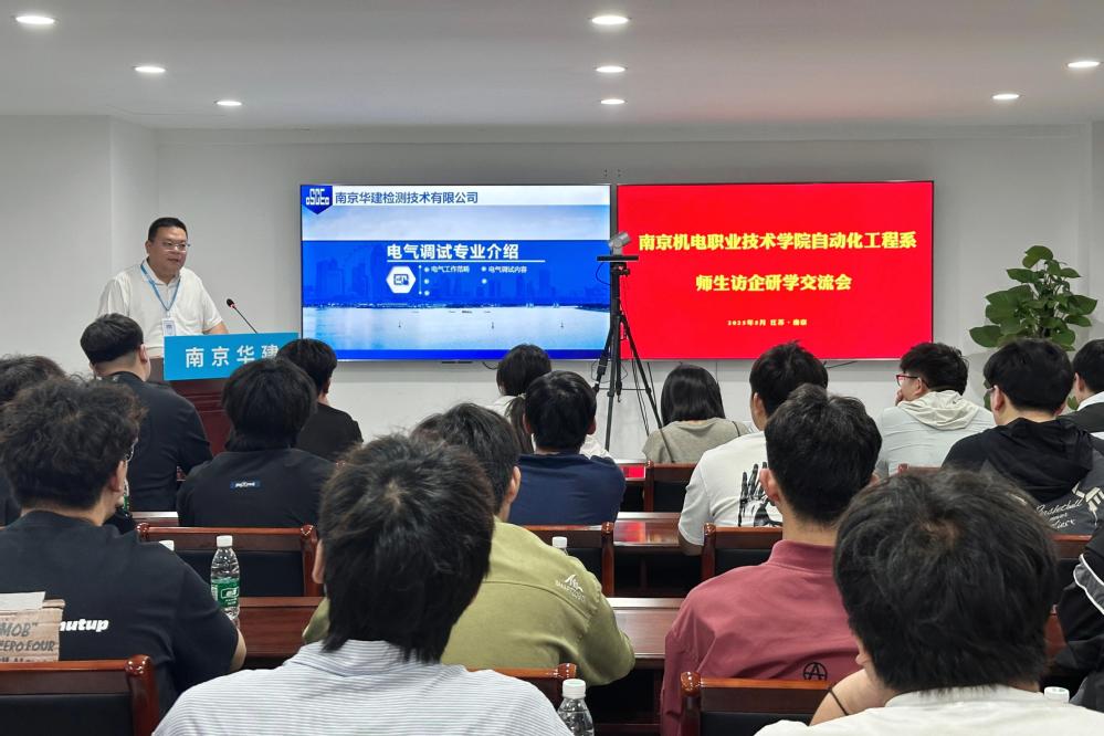 师生一行在企业人员陪同下参观了南京华建重点实验室。在技术专家的介绍引导下,师生详细了解无损检测、电气装置及设备检测调试、自动化仪表检测调试等多个专业实验室,近距离接触行业前沿技术与设备,直观感受专业知识在实际场景中的应用。