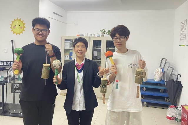 手工实践环节,师生分组制作艾草锤、艾草香包、竹筒风铃等传统手工艺品。同学们全神贯注于手中的活计,在指尖技艺中感受传统文化的温度。当一件件手工艺品完成时,它们不再只是简单的物件,而是承载着文化记忆的载体,让古老的技艺在年轻的指尖上焕发出新的生机。