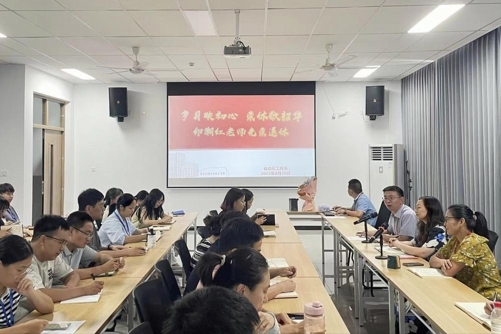 岁月映初心,荣休敬韶华。8月30日下午,自动化工程系在敏行楼401会议室为仰潮红老师举行荣休仪式。学校党委委员、人事处处长夏玲玲和自动化工程系全体教职工参会。会议由系党支部书记杨军主持。