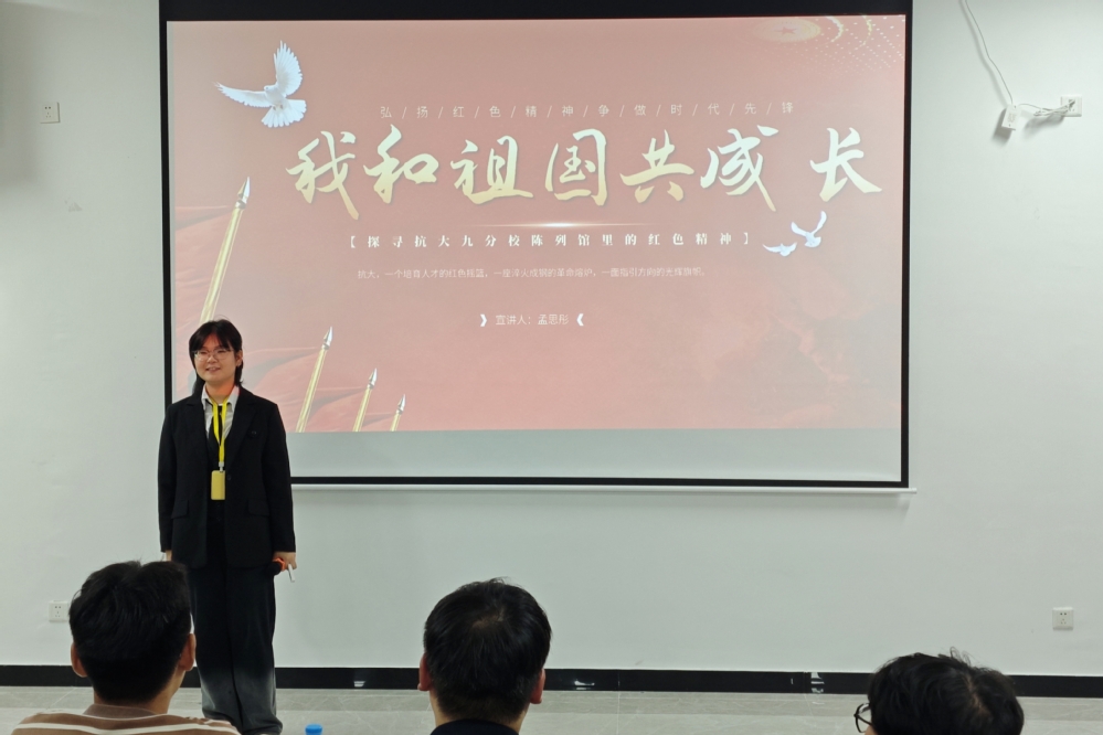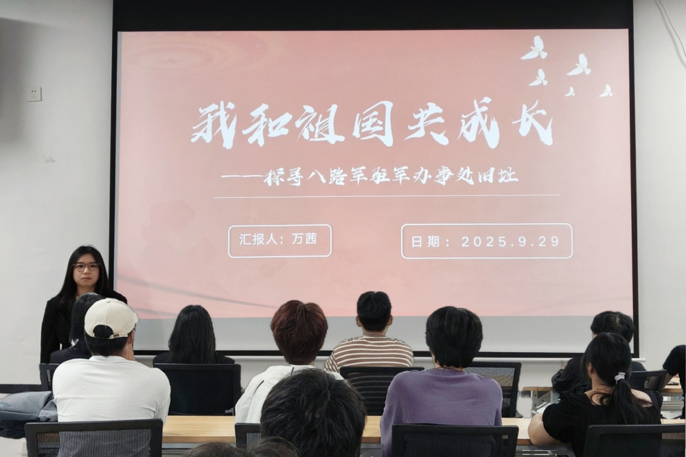 寻踪觅迹,叩问峥嵘岁月。“薪火青年红色行”实践团队成员机电244班万茜与机电242班孟思彤分享了暑期“寻访15处南京抗战地标”的实践感悟。二人循着历史脉络,走进抗大九分校历史陈列馆与八路军驻京办事处旧址,在实物展品与场景复原中,重温抗大“团结、紧张、严肃、活泼”的优良作风,深刻感悟办事处作为抗日民族统一战线前沿阵地的使命担当。她们的讲述让历史不再遥远,也让传承的信念在每一位在场学生干部心中更加坚定。