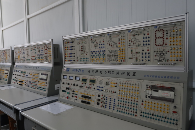 (5)PLC实训室。该实训室采用自锁连接插件,可完成交通灯控制、多液位控制等实训项目,提高了学生PLC开发和应用能力。